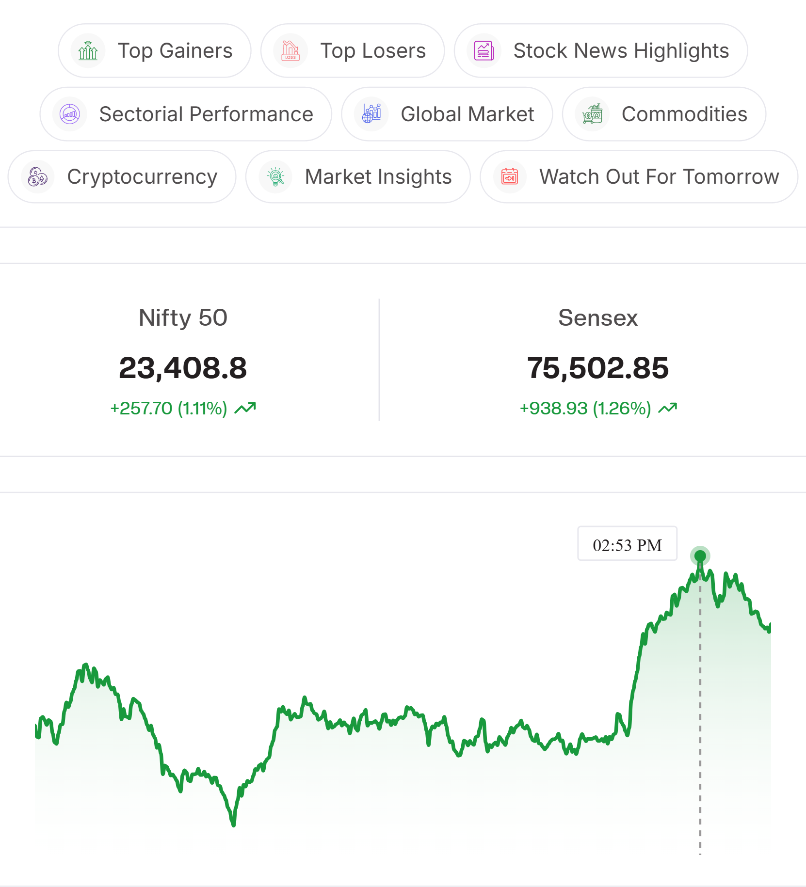 Financial Services | Nifty Fin Services (+1.50%): The index moved higher with buying in major financial stocks, led by HDFC Bank, ICICI Bank, and SBI, as the broader market remained positive.