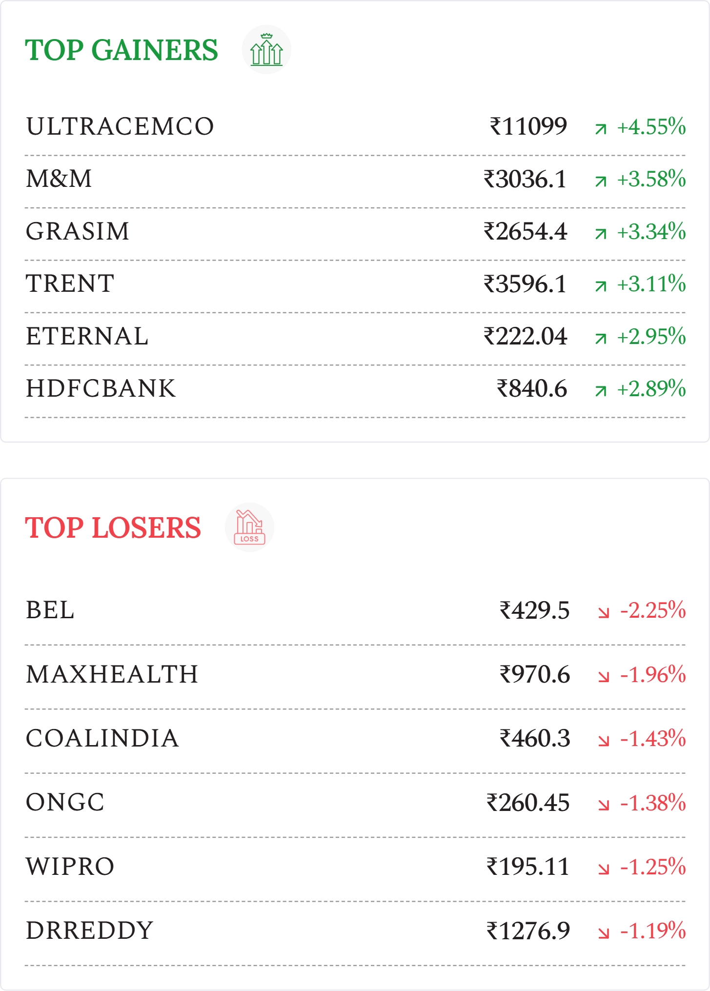 Adani Power (+5.11%): Stock rose sharply after the company received a Letter of Award (LoA) from Maharashtra State Electricity Distribution Company (MSEDCL) for the supply of 1,600 MW thermal power under a long-term Power Supply Agreement.