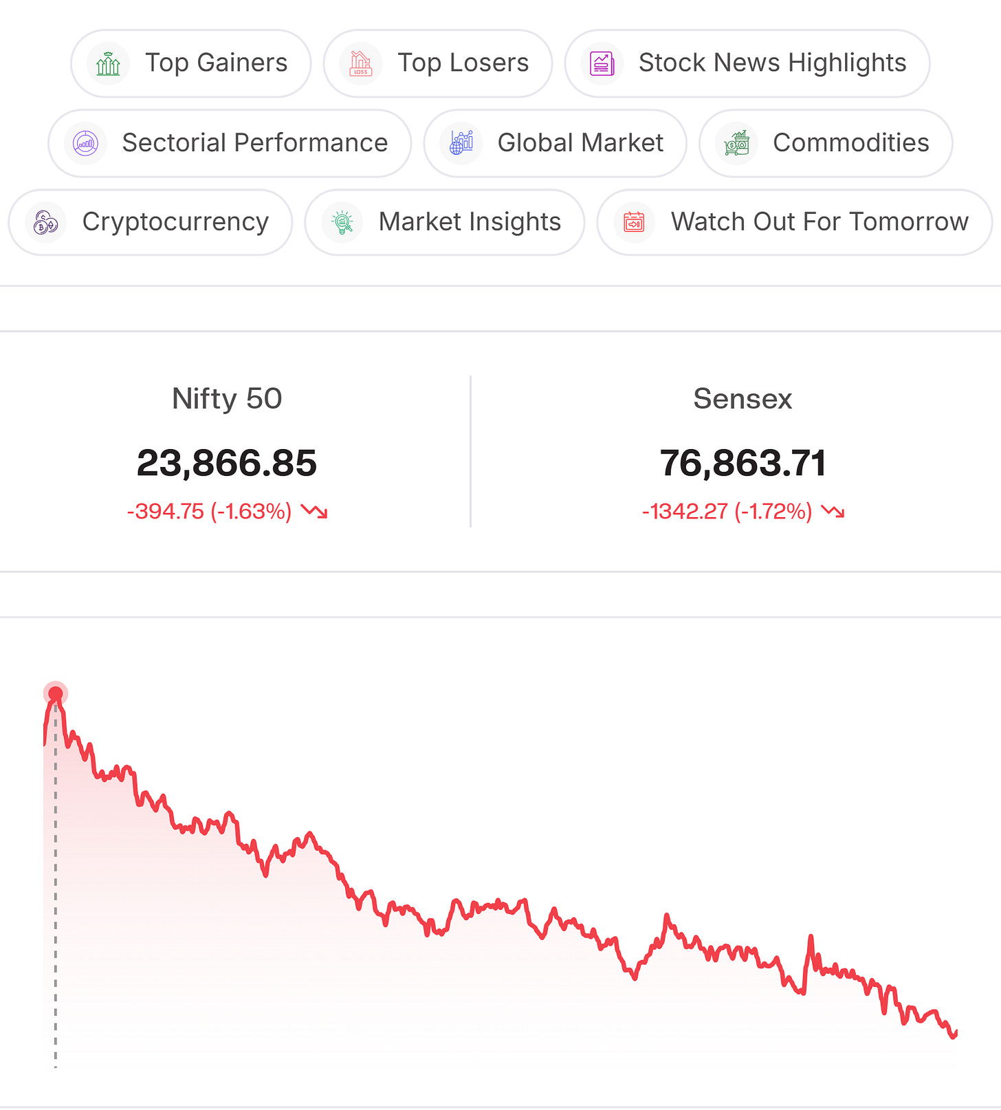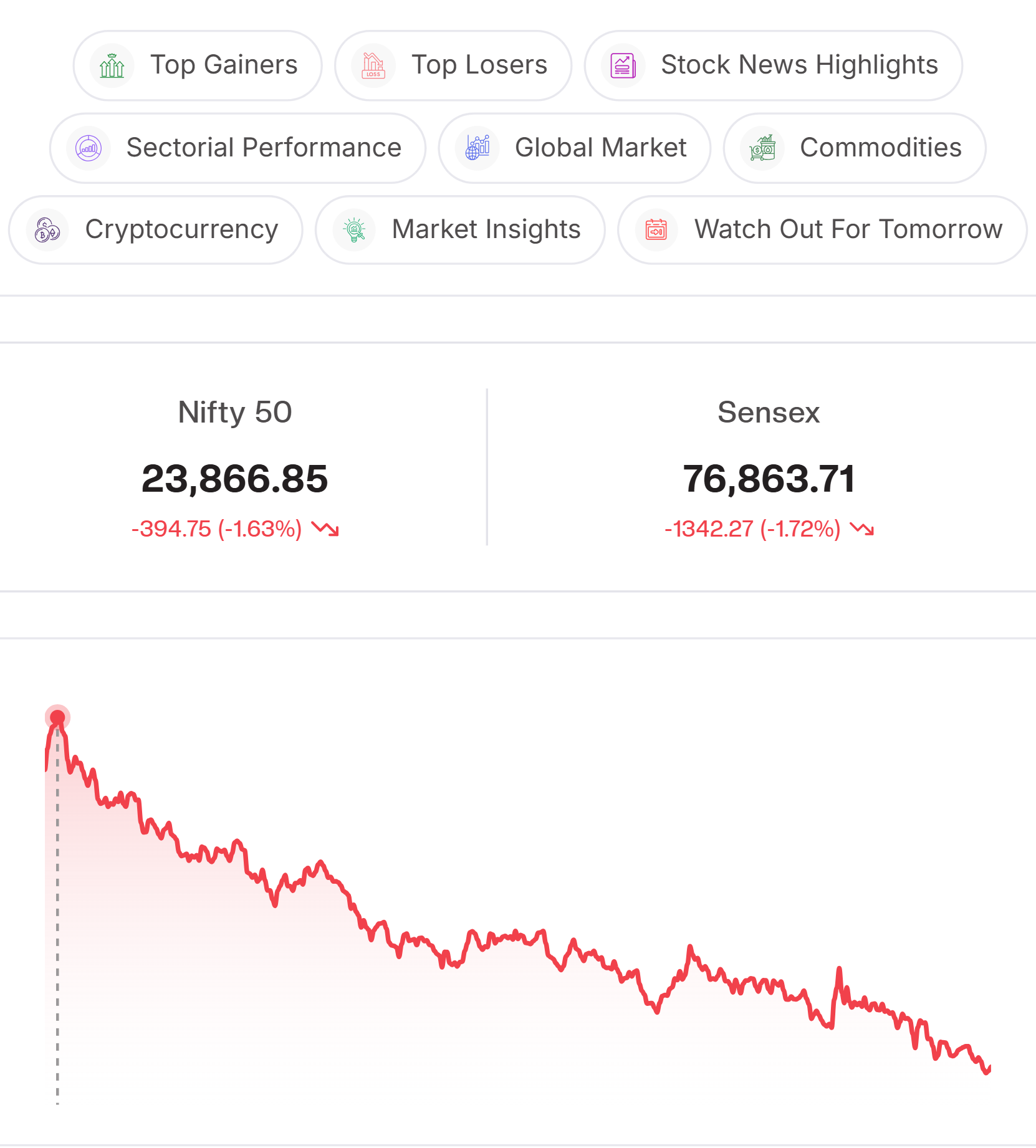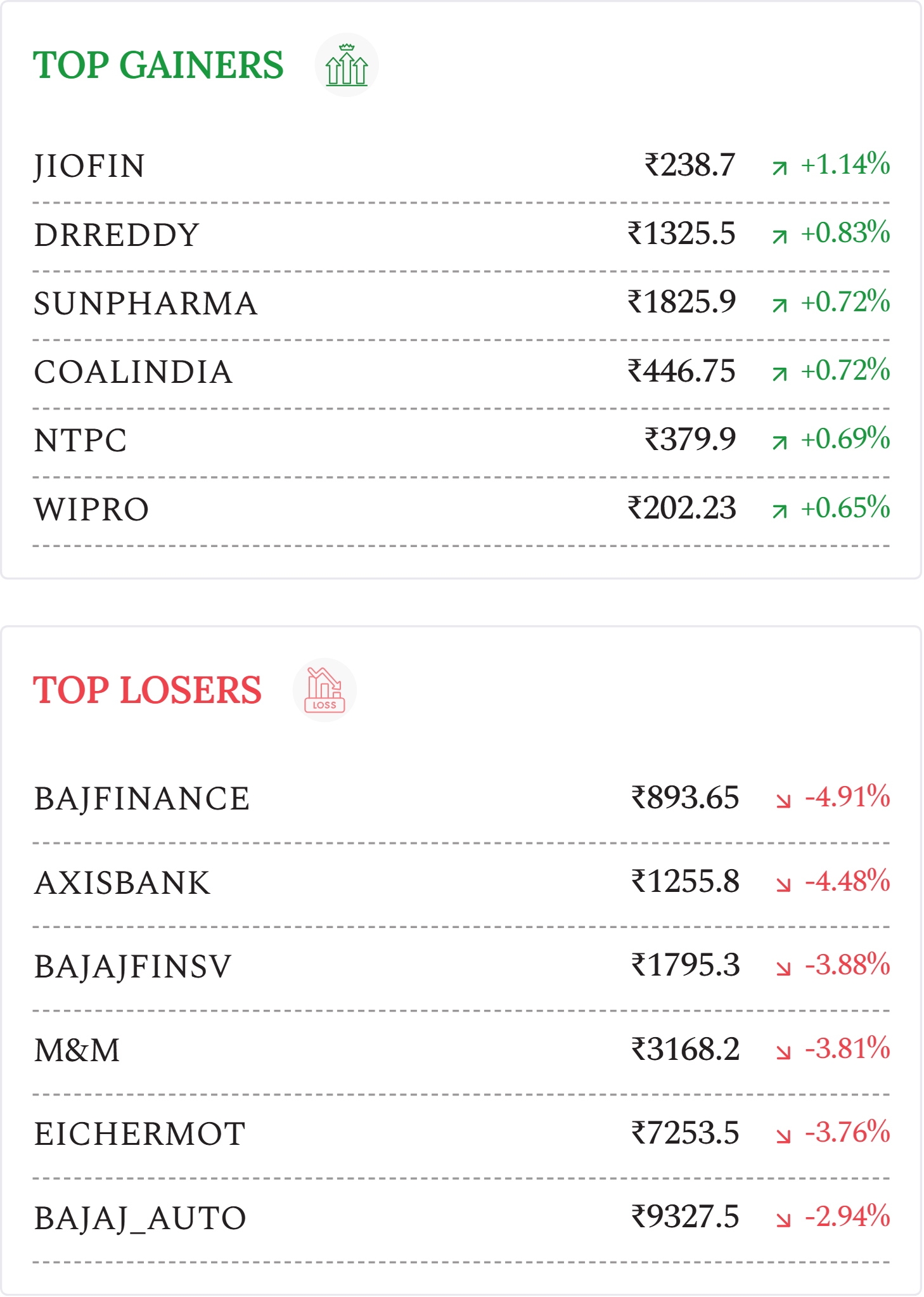 Aditya Birla Capital (-2.62%): Stock declined despite the company investing ₹750 crore in Aditya Birla Housing Finance via rights issue and raising ₹755 crore through private placement of non-convertible debentures (NCDs) to investors.