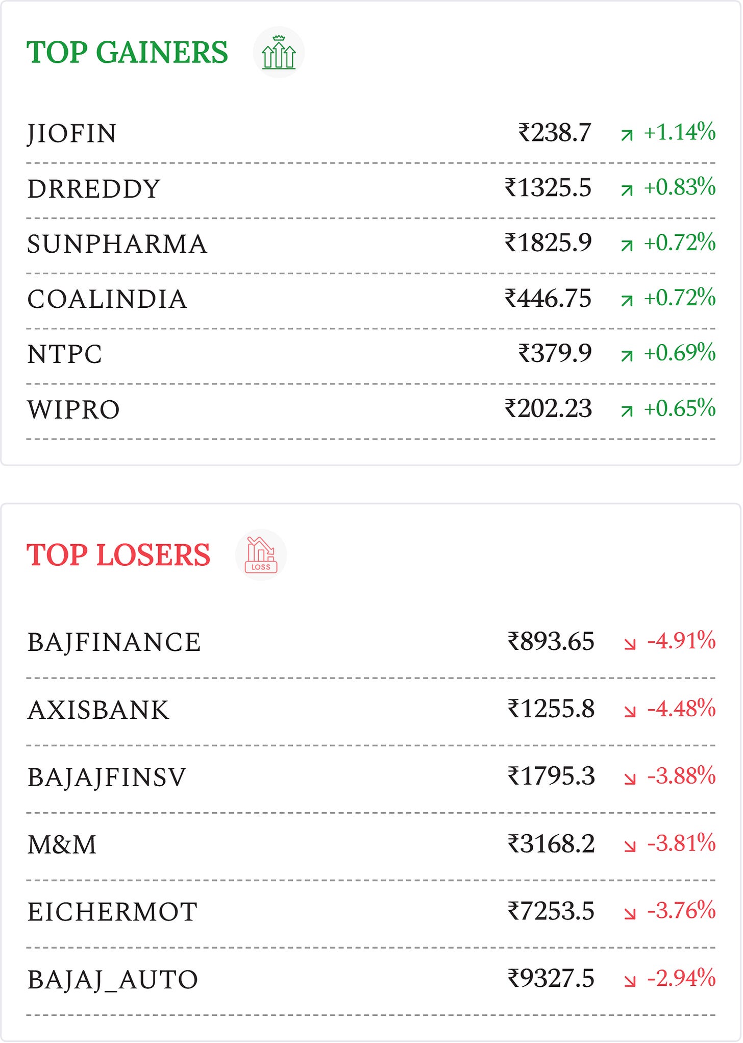 Bajaj Finance (-4.91%): Shares fall after reports that the RBI may tighten rules for upper-layer NBFCs, potentially removing regulatory advantages over banks in MD/ED tenure and compensation approvals.
