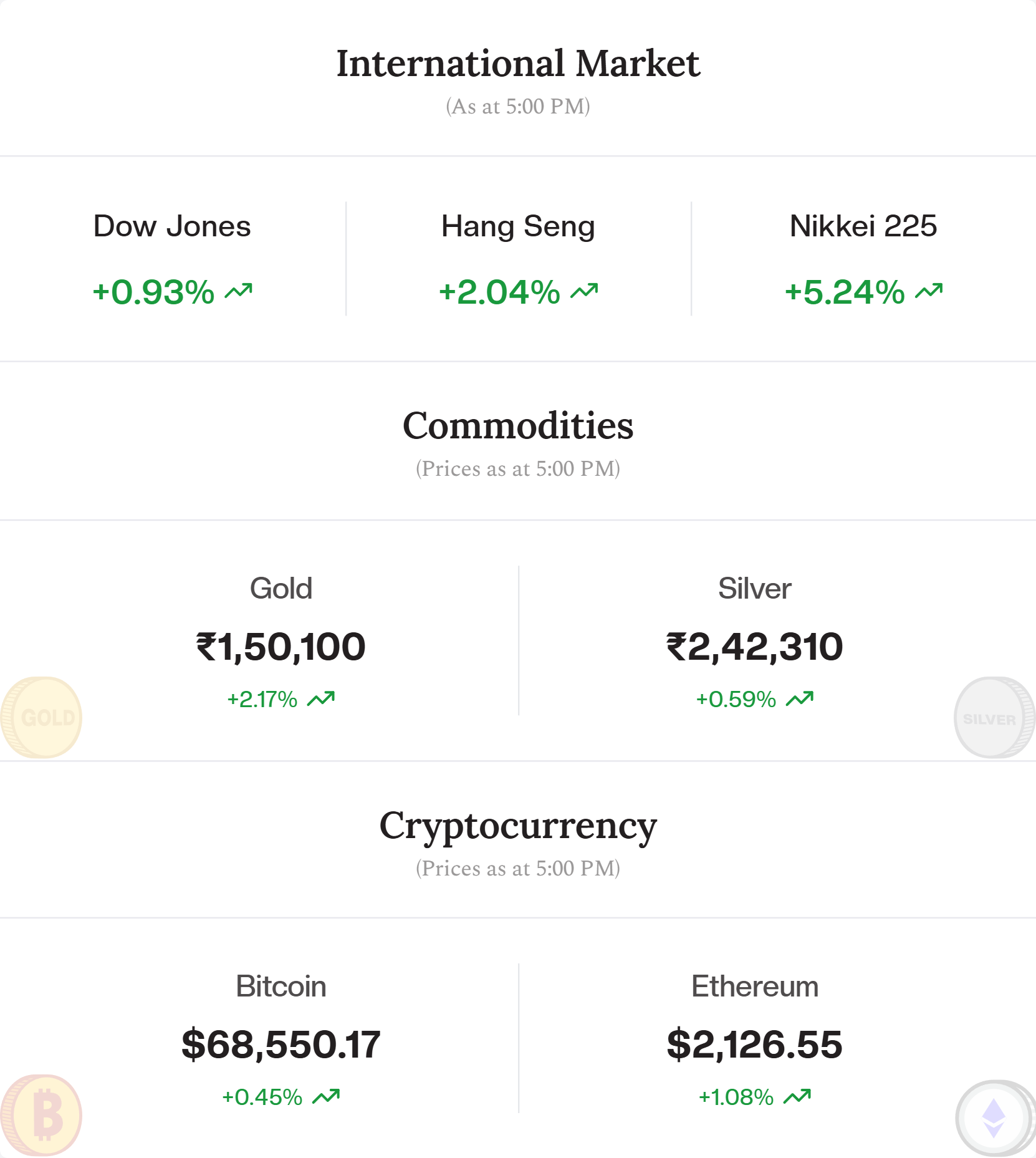India Defence | Nifty India Defence (+5.32%): Sector rallied led by Bharat Electronics, HAL & Mazagon Dock after BEL secured ₹6,795 crore defence order, strong FY26 provisional revenue from Midhani and GRSE, boosting sentiment across defence stocks.