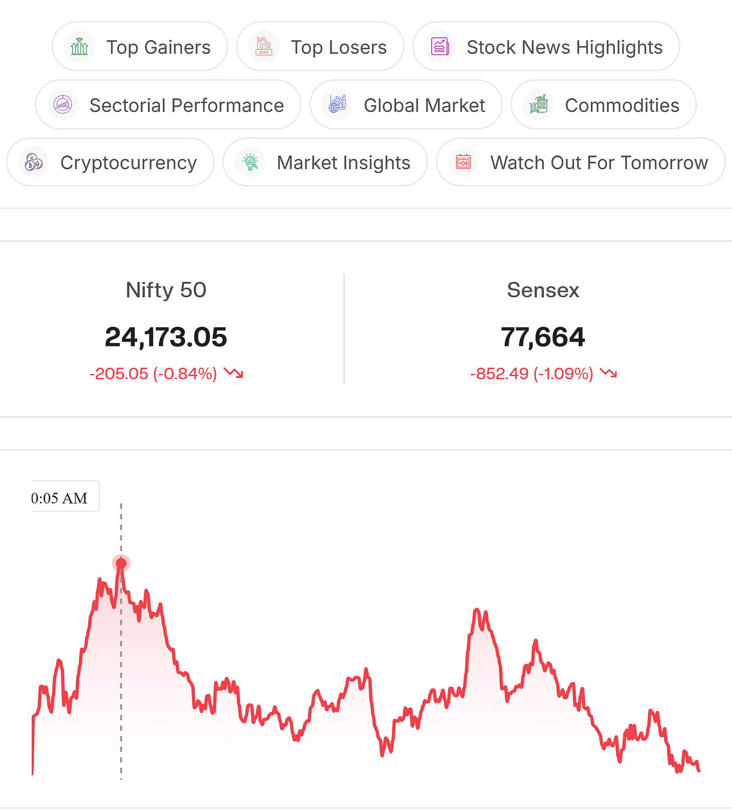 Advance-Decline Ratio: Advances stood at 1,253, while declines outnumbered at 2,036, indicating negative market breadth.