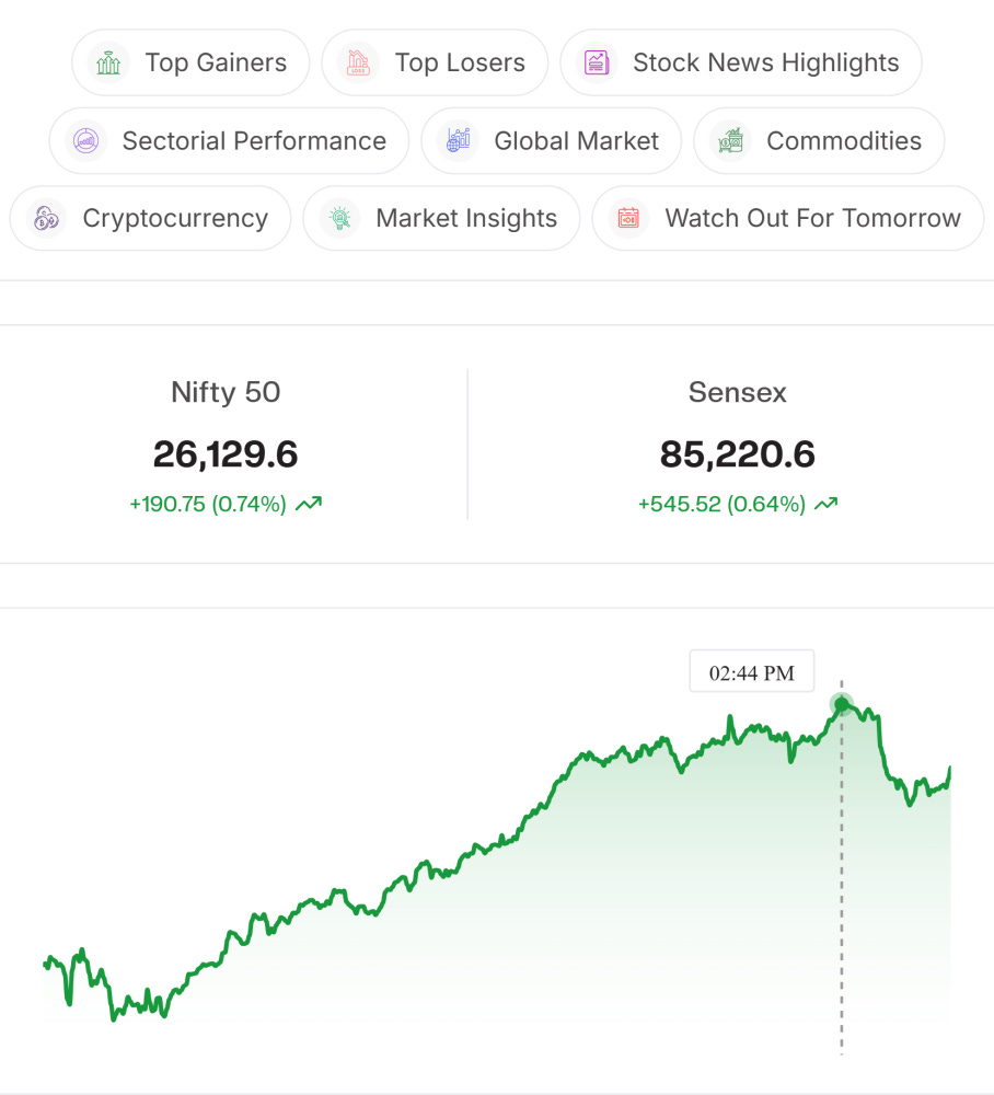 Advance-Decline Ratio: Positive market breadth was seen today, with 2,221 gainers outweighing 935 losers, signalling supportive sentiment.