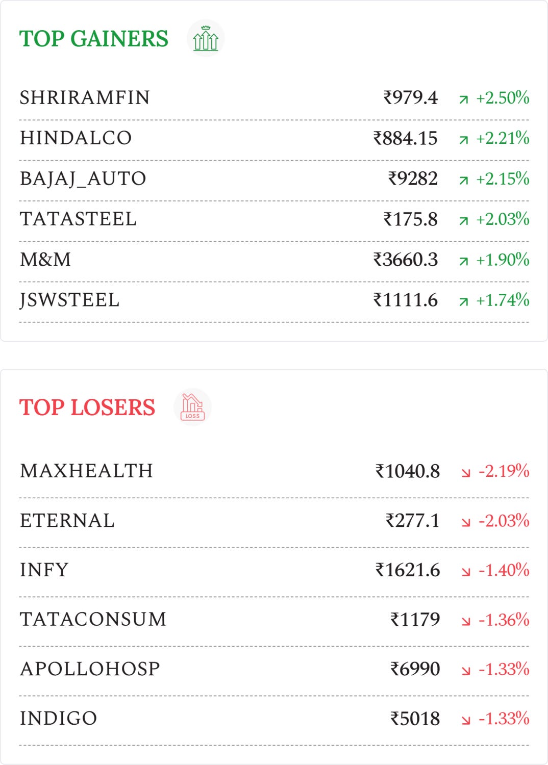 IFCI (+4.88%): Stock gained after selling a 10% stake in NEDFi for ₹122 crore, monetising investments amid ongoing consolidation plans.
