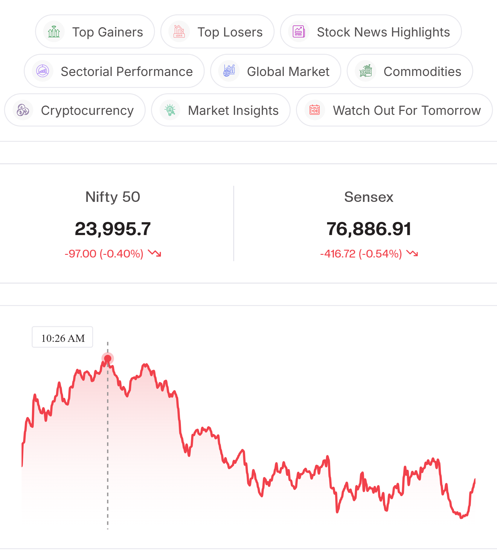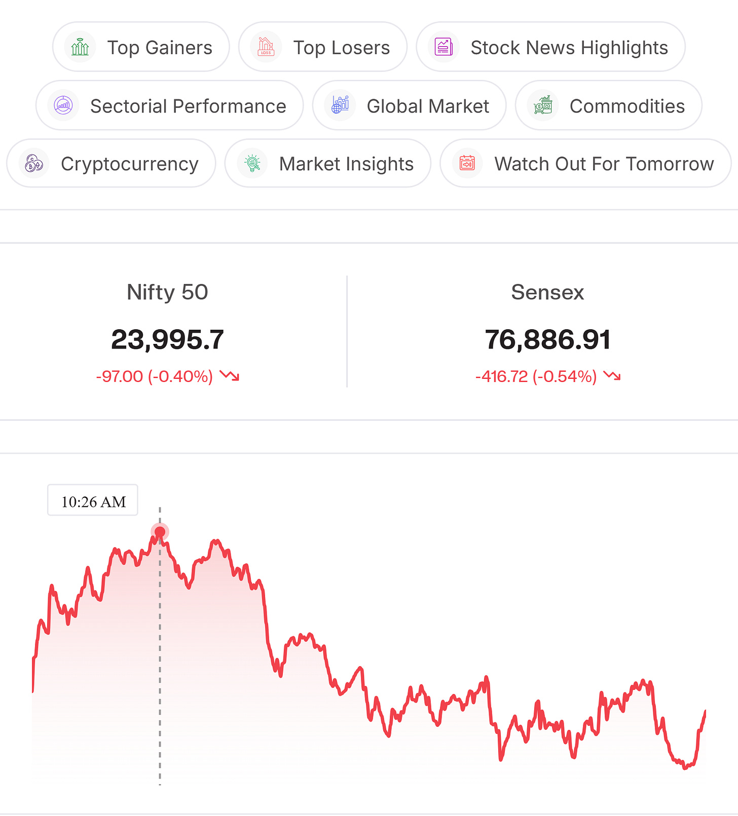 Private Bank | Nifty Private Bank (-1.23%): Index declined led by losses in ICICI Bank, HDFC Bank, and Axis Bank; selling pressure and weak market sentiment dragged the sector lower.