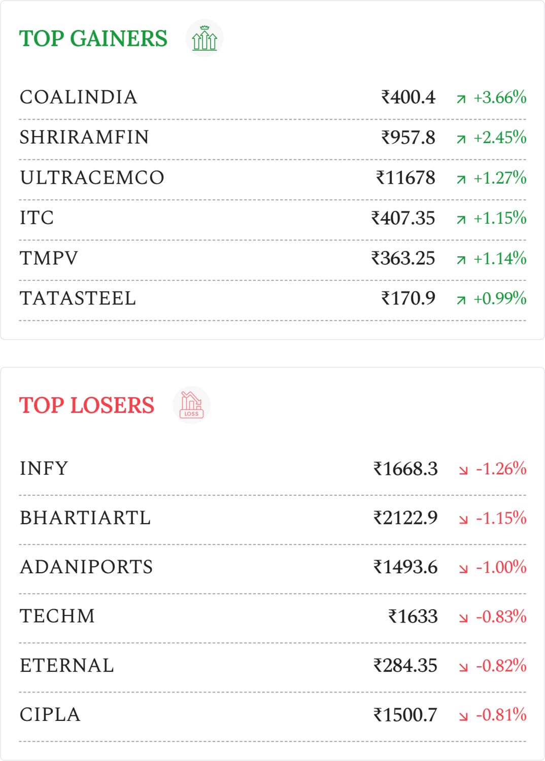 Coforge (-4.74%): Shares dropped after the firm announced a December 26 board meeting to discuss fund-raising plans, triggering equity dilution worries.