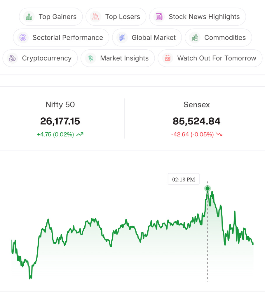 Advance-Decline Ratio: The broader market showed positive breadth, as 1,833 stocks advanced while 1,320 declined, supporting overall market resilience.