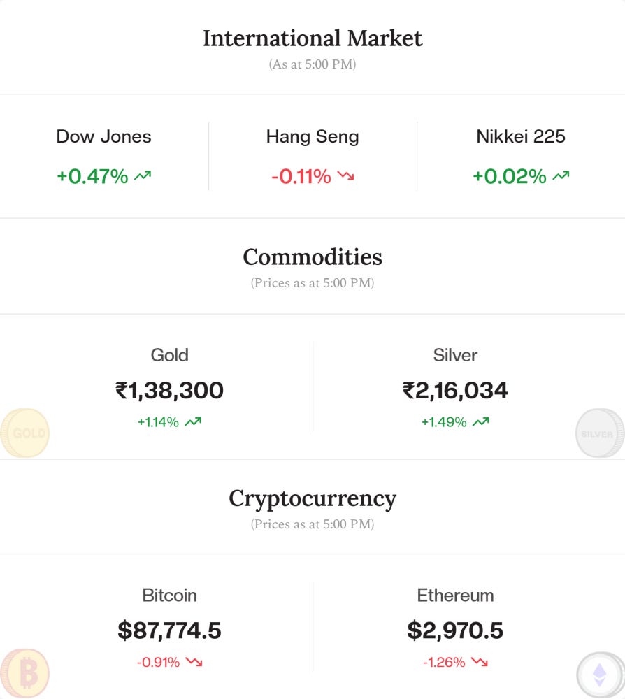 Prestige Estates Projects (+0.11%): Shares gained as the company expanded its Chennai footprint with a 25-acre land acquisition in Medavakkam.