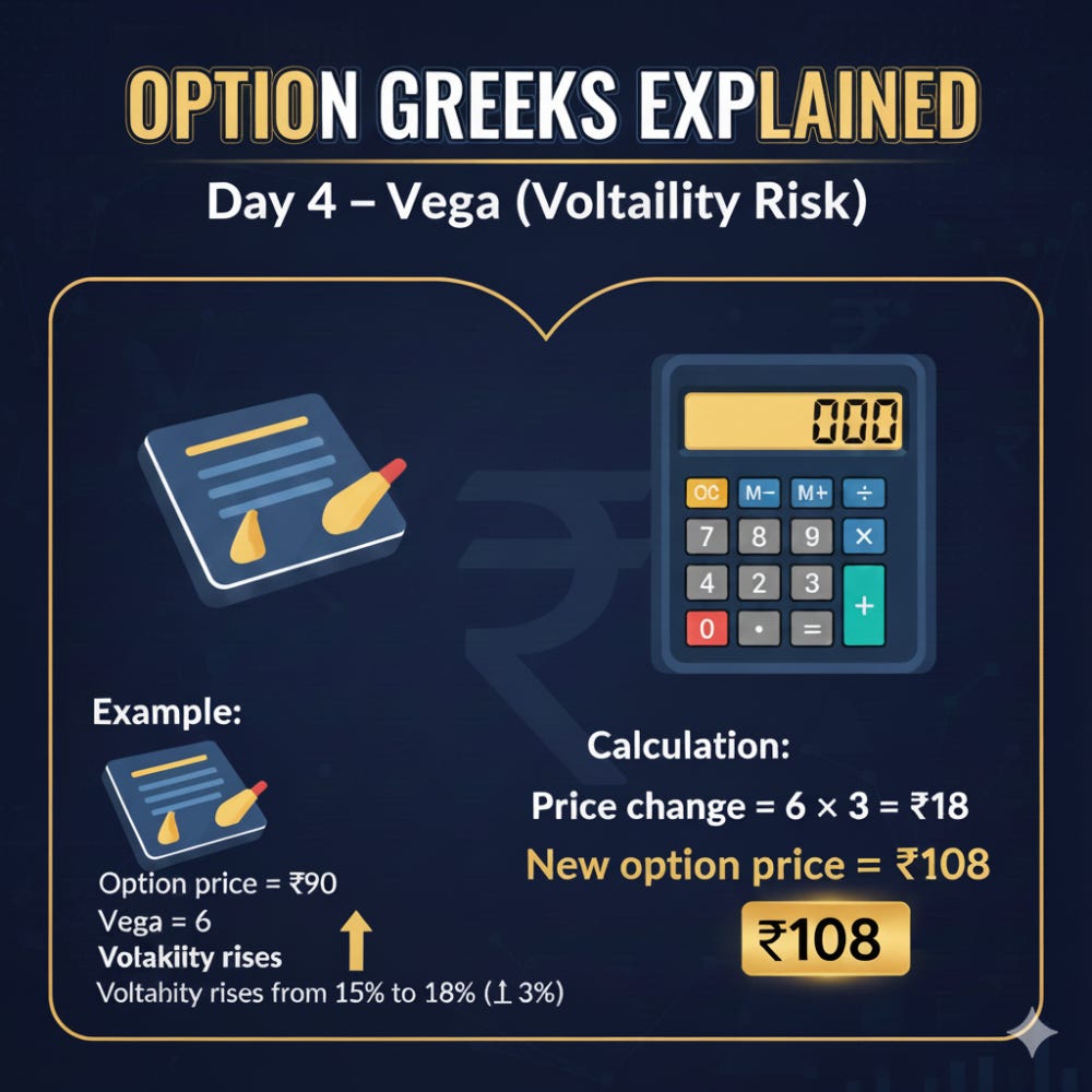 What it means: Vega measures how option prices respond to changes in implied volatility, with rising volatility increasing premiums and falling volatility reducing option value significantly.