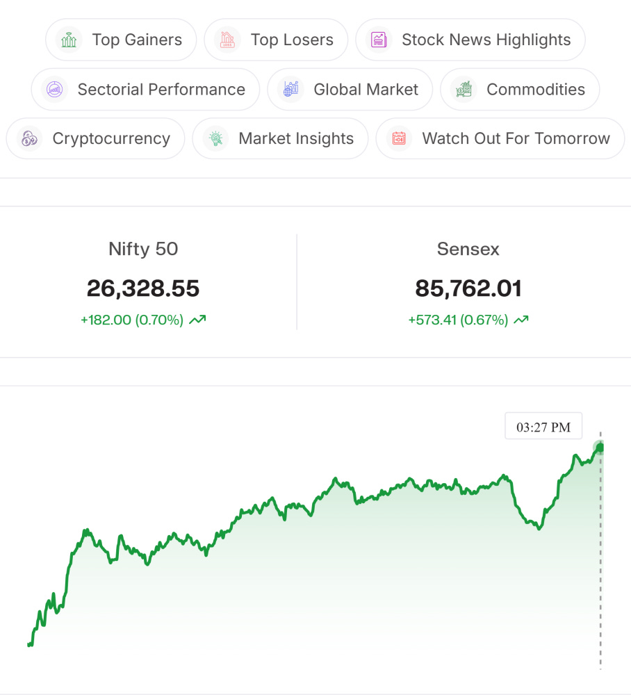 Index Watch: Nifty opened flat but staged a strong upward rally through today’s session, hitting a fresh all-time high near 26,328 and signalling the start of a New Year rally; the key question now is whether this marks the beginning of sustained higher highs or a short-term trap, as broad-based sectoral support lifted the index.