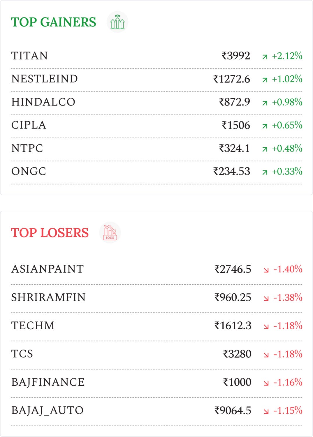 Panacea Biotec (+13.36%): The stock surged after UNICEF increased vaccine order volumes for 2026–27, improving revenue visibility, strengthening export prospects.