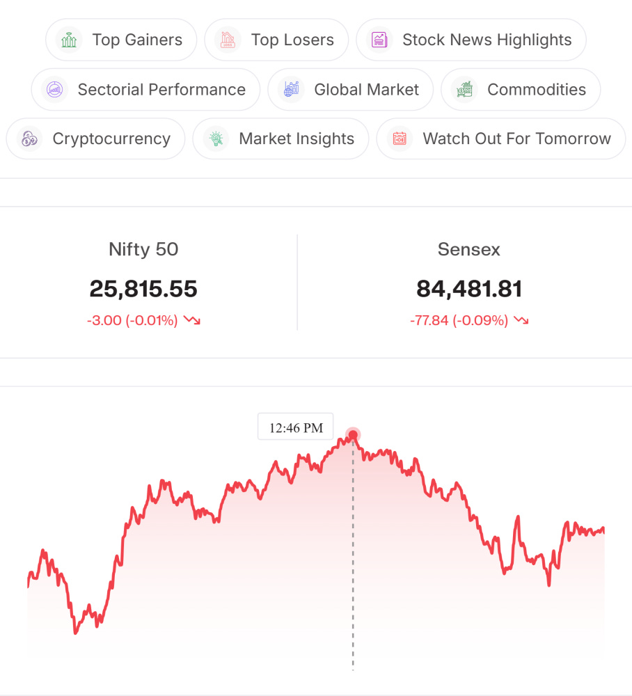 Power Grid Corp. (- 1.21%): Stock fell despite board approval of ₹1,226.93 Cr. capex to refurbish the Bhadrawati HVDC installation, aimed at strengthening transmission infrastructure.
