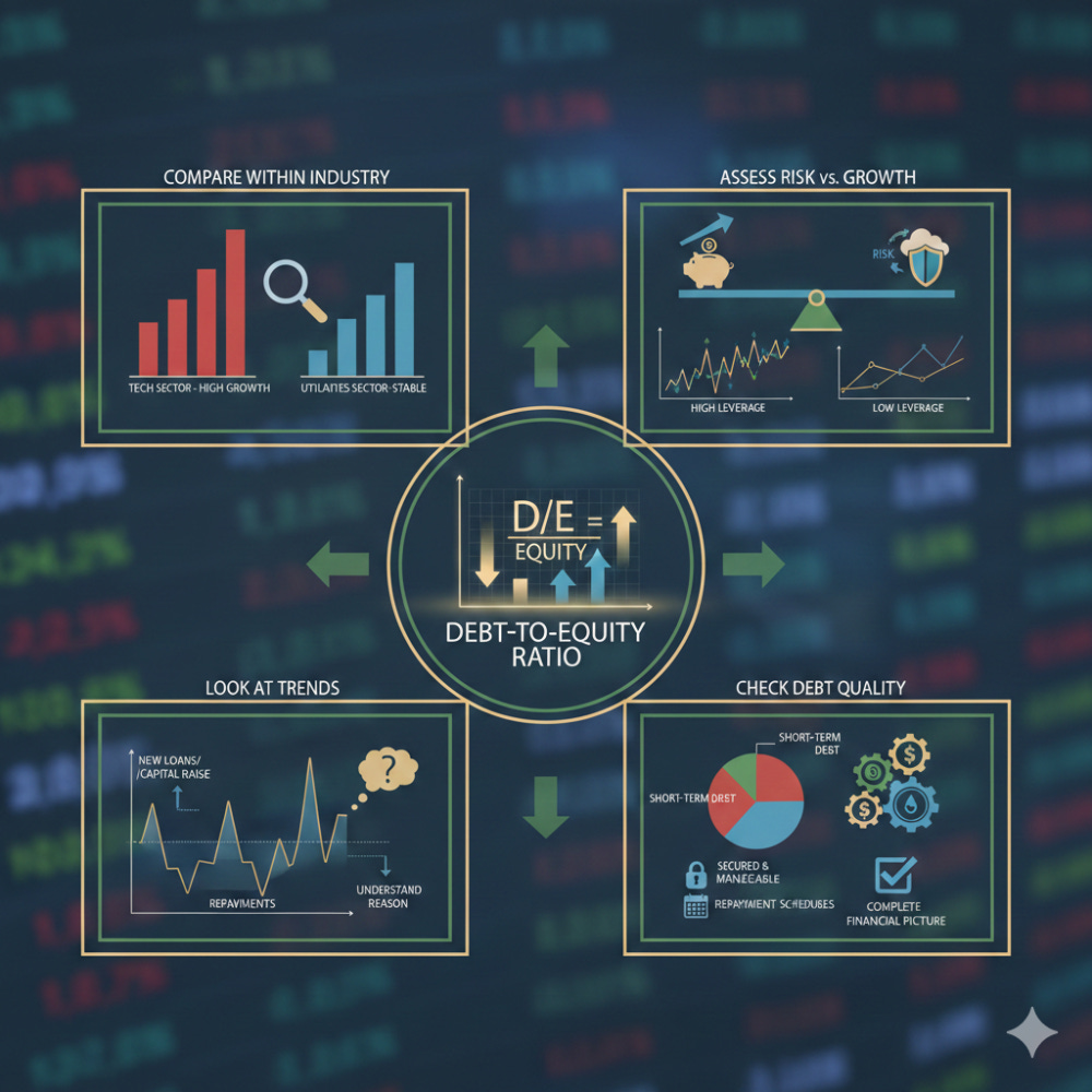 Look at trends: Sudden jumps or drops in D/E ratio may reflect new loans, repayments, or capital raises. Understanding the reason is key.