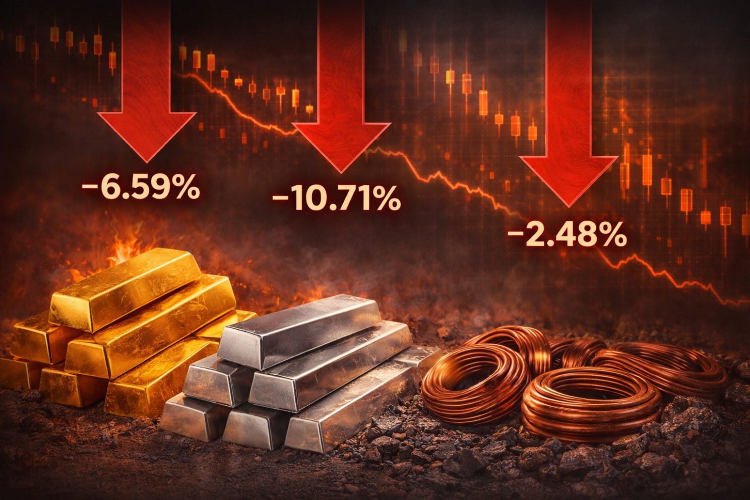 Here is where the markets got truly weird this week. Normally, during a major war, investors panic and buy safe haven assets like gold and silver soaring. Industrial metals usually rise too, due to fears of supply chain disruptions. Instead, we saw a broad crash: