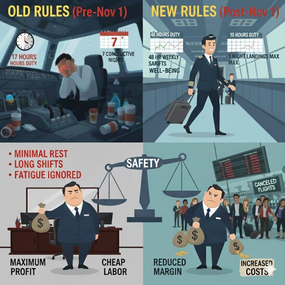 India’s updated Flight Duty Time Limitation (FDTL) norms, effective November 1, form the core of the recent aviation crisis. These rules mandate at least 48 hours of weekly rest, impose stricter limits on night duties, cap consecutive night landings at two, broaden what counts as total duty time to include pre- and post-flight tasks, and require additional rest after long-haul operations. The framework closely mirrors US FAA and European EASA standards, reflecting a global shift toward treating fatigue as a serious safety hazard. Modern safety science increasingly places inadequate rest in the same category as alcohol or sedatives because fatigue has been a factor in numerous global near-misses.