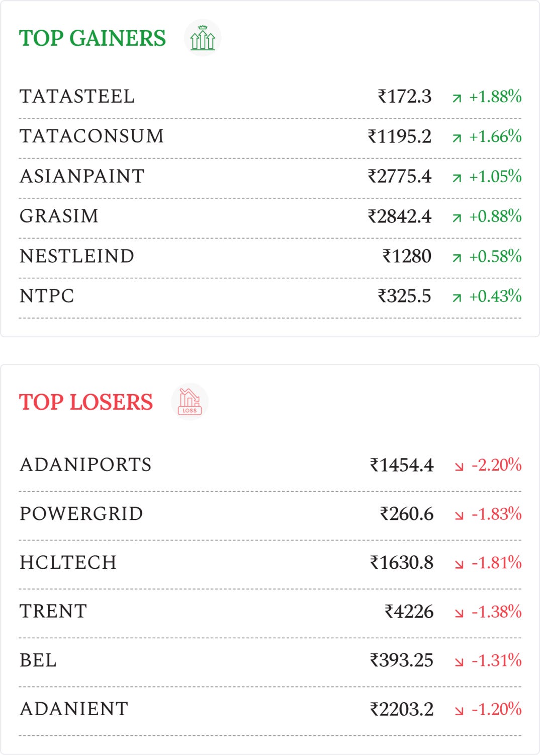 Jindal Steel (+0.41%): Shares rose after announcing plans to double Raigarh structural steel capacity from 1.2 MTPA to 2.4 MTPA by 2028, strengthening growth outlook.