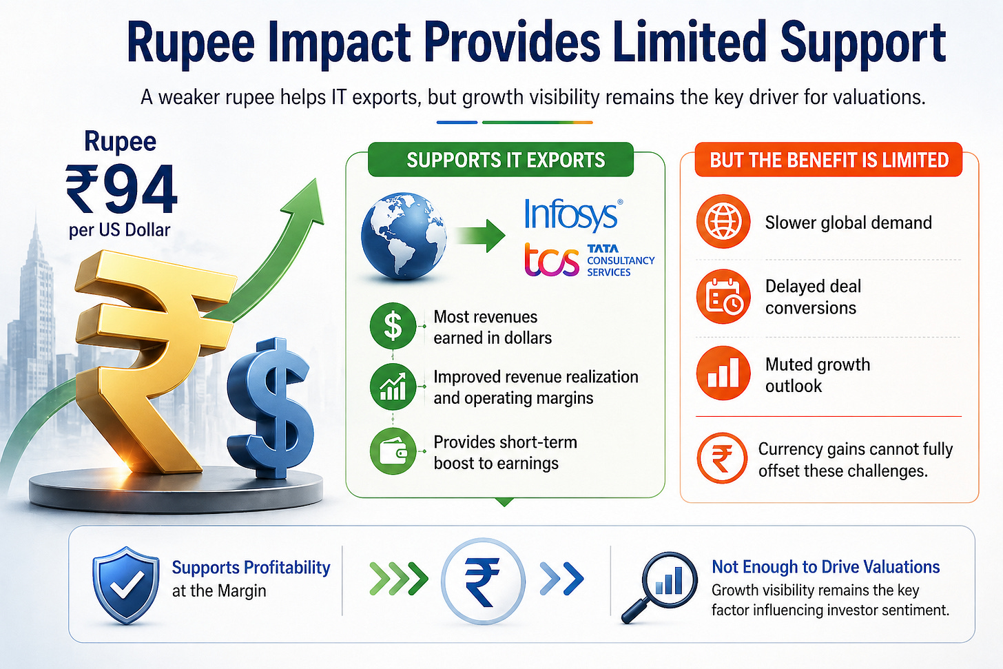 However, this benefit remains limited and largely temporary. Currency gains cannot fully offset the impact of slower global demand, delayed deal conversions, and muted growth outlook. As a result, while rupee depreciation supports profitability at the margin, it is not sufficient to drive valuations, with growth visibility continuing to be the key factor influencing investor sentiment.
