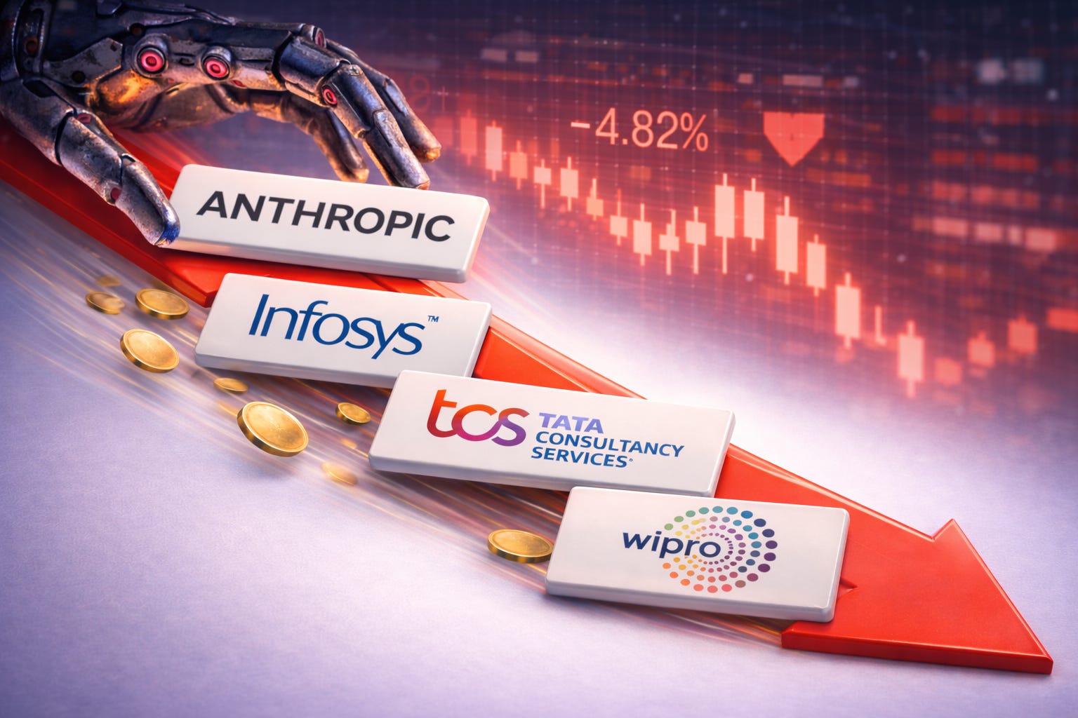 This wasn’t some random flash crash. It was a global tech selloff triggered by Anthropic’s launch of advanced AI workflow automation tools – Claude Cowork plugins that can now handle legal document review, sales analysis, compliance monitoring, and marketing workflows end-to-end. Wall Street tech giants like Salesforce and Adobe tanked 7%. Nasdaq Composite fell 1.43%. And Indian IT stocks? They got hit hardest, amplifying fears that AI isn’t just a buzzword anymore – it’s a direct competitor to the traditional IT services model.
