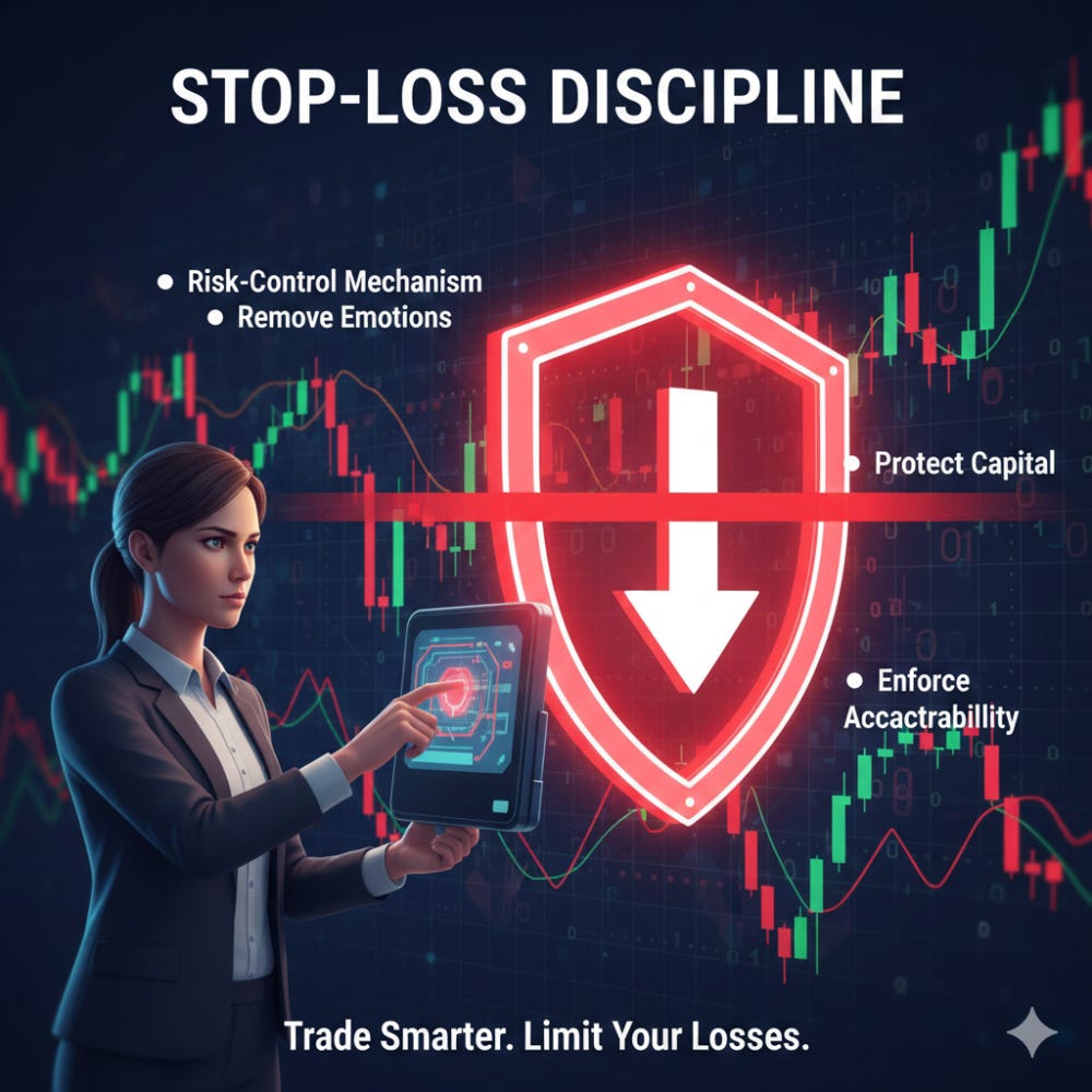 A stop-loss is a predefined exit level designed to limit losses when the market moves against a position. It is not a prediction tool but a risk-control mechanism. Many traders avoid stop-losses due to fear of being wrong, but this often leads to bigger losses. A disciplined stop-loss helps remove emotions from decision-making and enforces accountability. When used correctly, it protects capital and allows traders to re-enter opportunities with a clear mindset. Consistent stop-loss discipline separates professional traders from impulsive market participants.