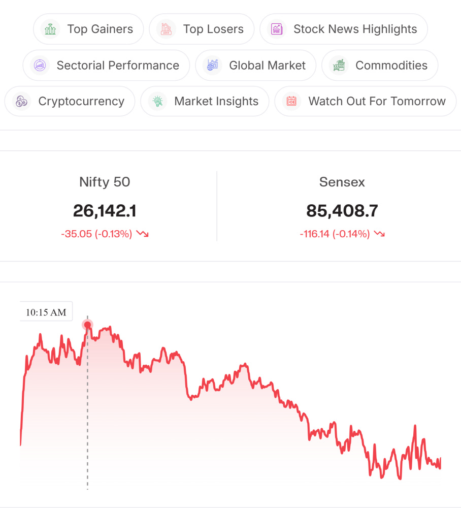 Index Watch: After a subdued session, Nifty traded in a narrow range and struggled to sustain moves above intraday highs, indicating consolidation. Market sentiment remains cautious, with focus on whether the index can resume its upward momentum or slip into a deeper corrective phase from current levels.