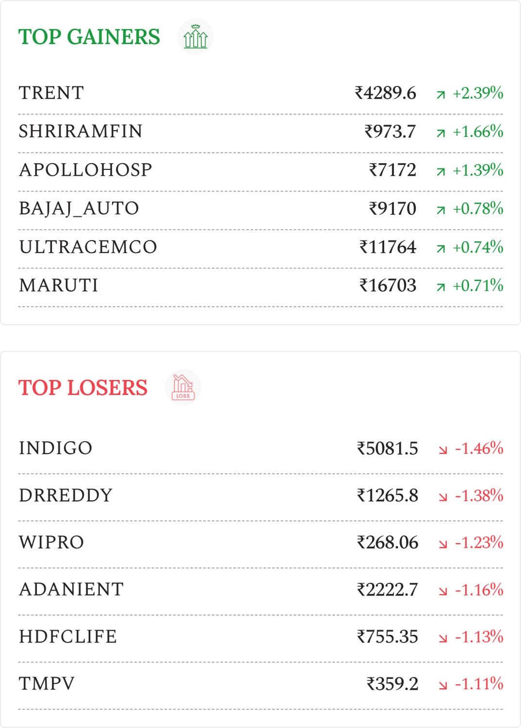 VIP Industries (+11.61%): Share surged after investors digested a large block deal that saw 3.7 crore shares (26% stake) change hands, lifting VIP Industries’ share price and signaling ownership shifts.