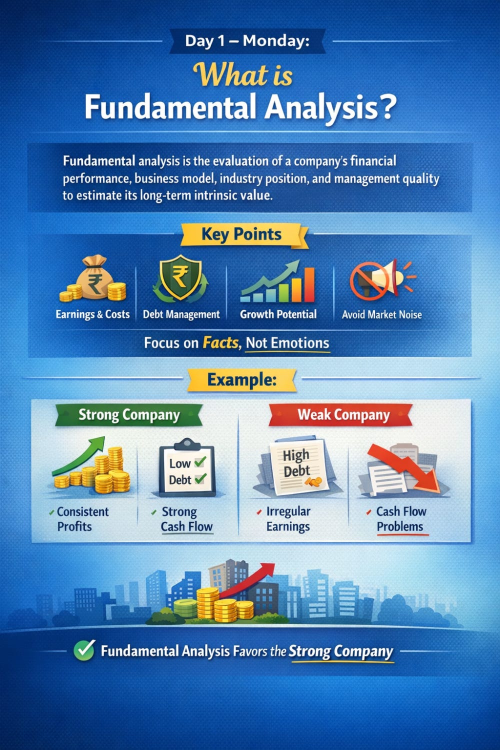 Key Points : This approach focuses on understanding how a company earns money, manages costs, handles debt, and grows over time. It helps investors avoid short-term market noise, identify quality businesses, and make disciplined long-term investment decisions based on facts rather than emotions.