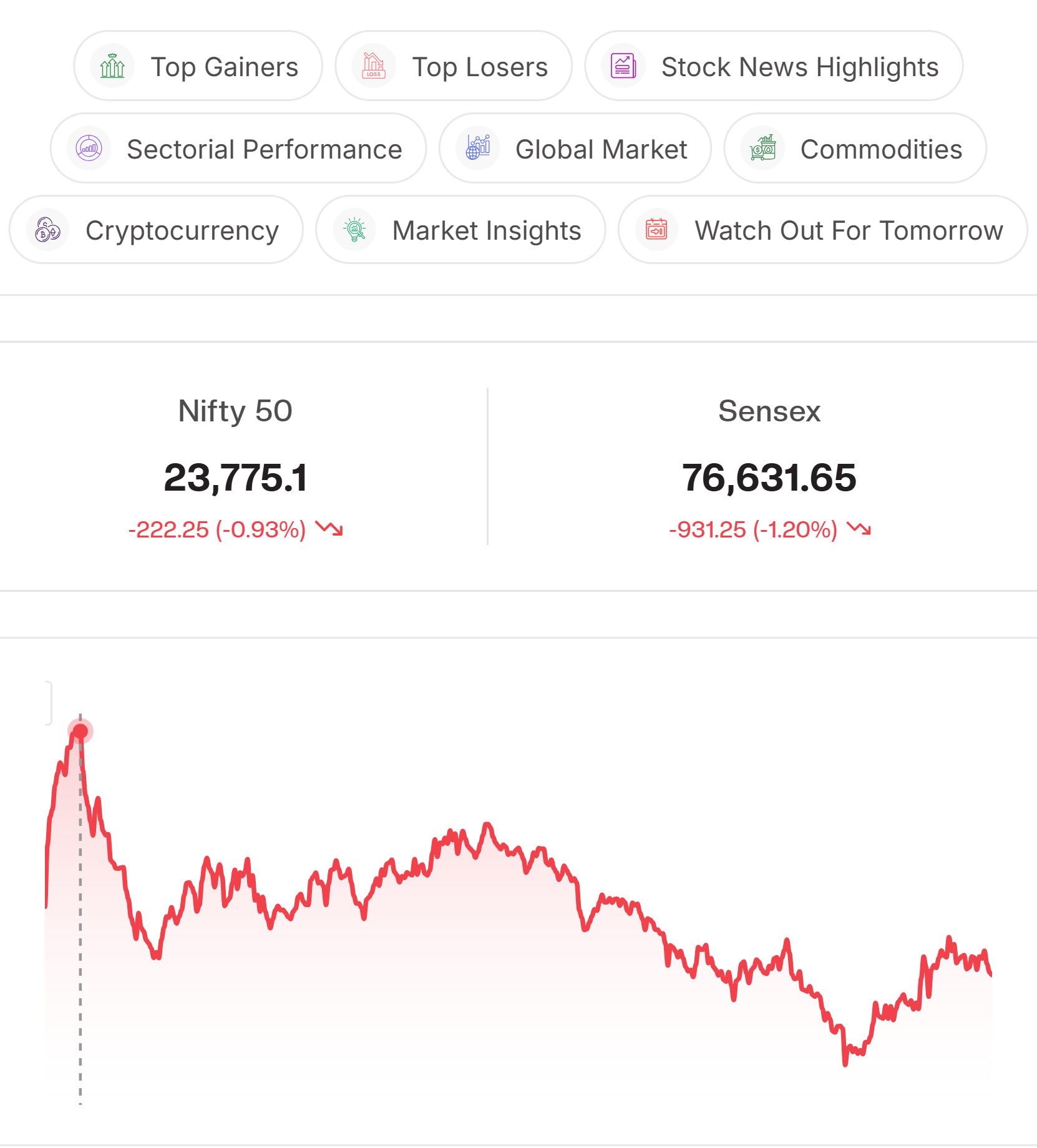 Index Watch: Nifty opened with a negative start and saw minor correction after yesterday’s sharp rally. Sectoral rotation was visible with buying in Defence and Metals, while Banking stocks faced pressure. The index holds strong support near 23,400, while resistance is seen around 24,300.