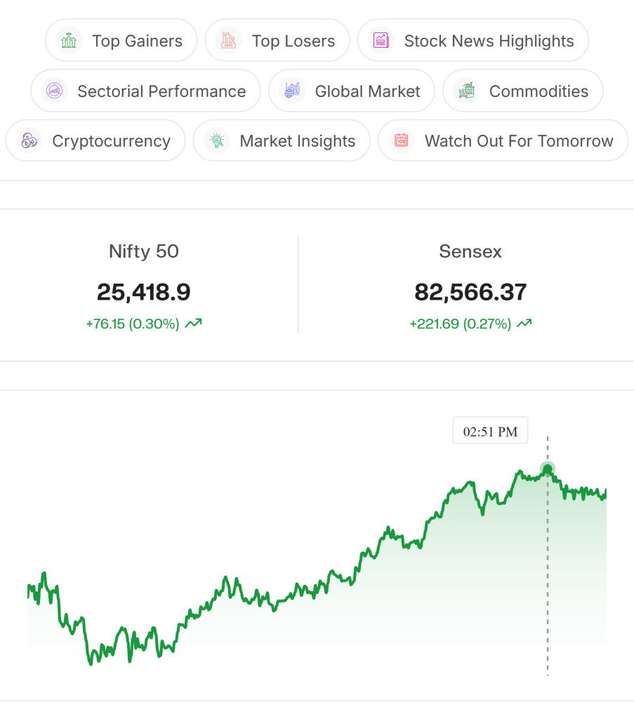 Technical Level: Nifty opened flat and saw selling pressure in the morning session, but found support near 25,160, rebounded steadily, formed an uptrend till close, faced resistance around 25,460, and ended above the day’s opening, indicating positive sentiment.