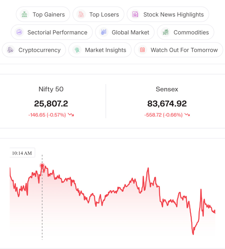 Advance-Decline Ratio: Market breadth remained negative, with 1,151 advances against 2,008 declines, indicating selling pressure across the broader market.