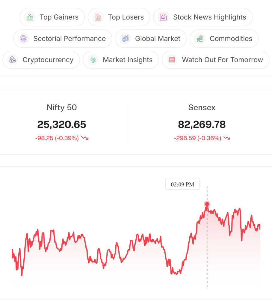 Technical Level: Nifty opened with a sharp gap down, consolidated in a range after early selling, finding support near 25,210 and resistance around 25,370. Weak global markets and falling commodity prices weighed on sentiment today.