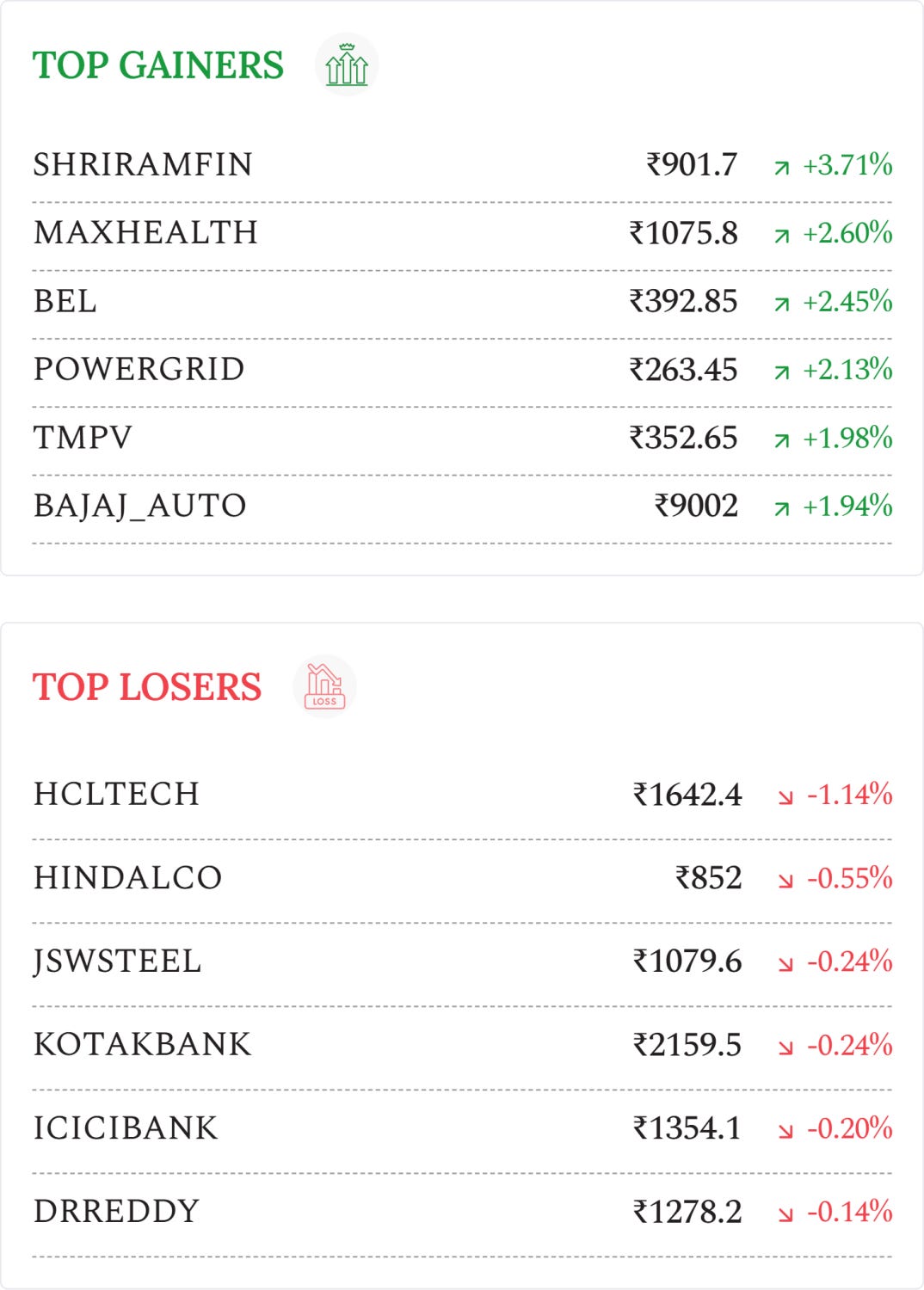 HCL Technologies (-1.14%): Stock slipped despite the company announcing the $160 million acquisition of HPE’s Telco Solutions business, aimed at strengthening its telecom portfolio and 5G network services.
