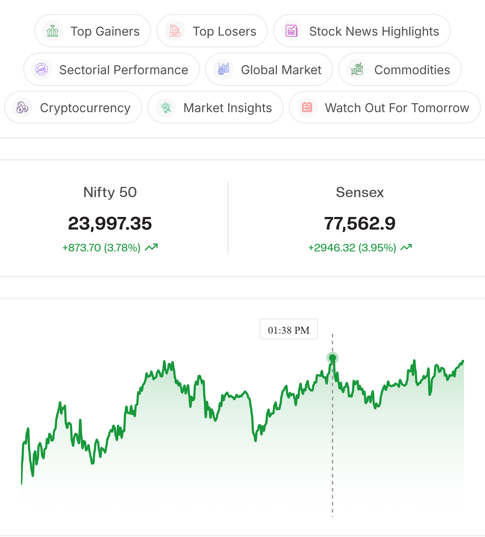 Private Banking | Nifty Private Bank (+5.56%): Index surged after RBI kept interest rates unchanged, led by HDFC Bank, ICICI Bank, and Axis Bank, boosting overall sentiment.