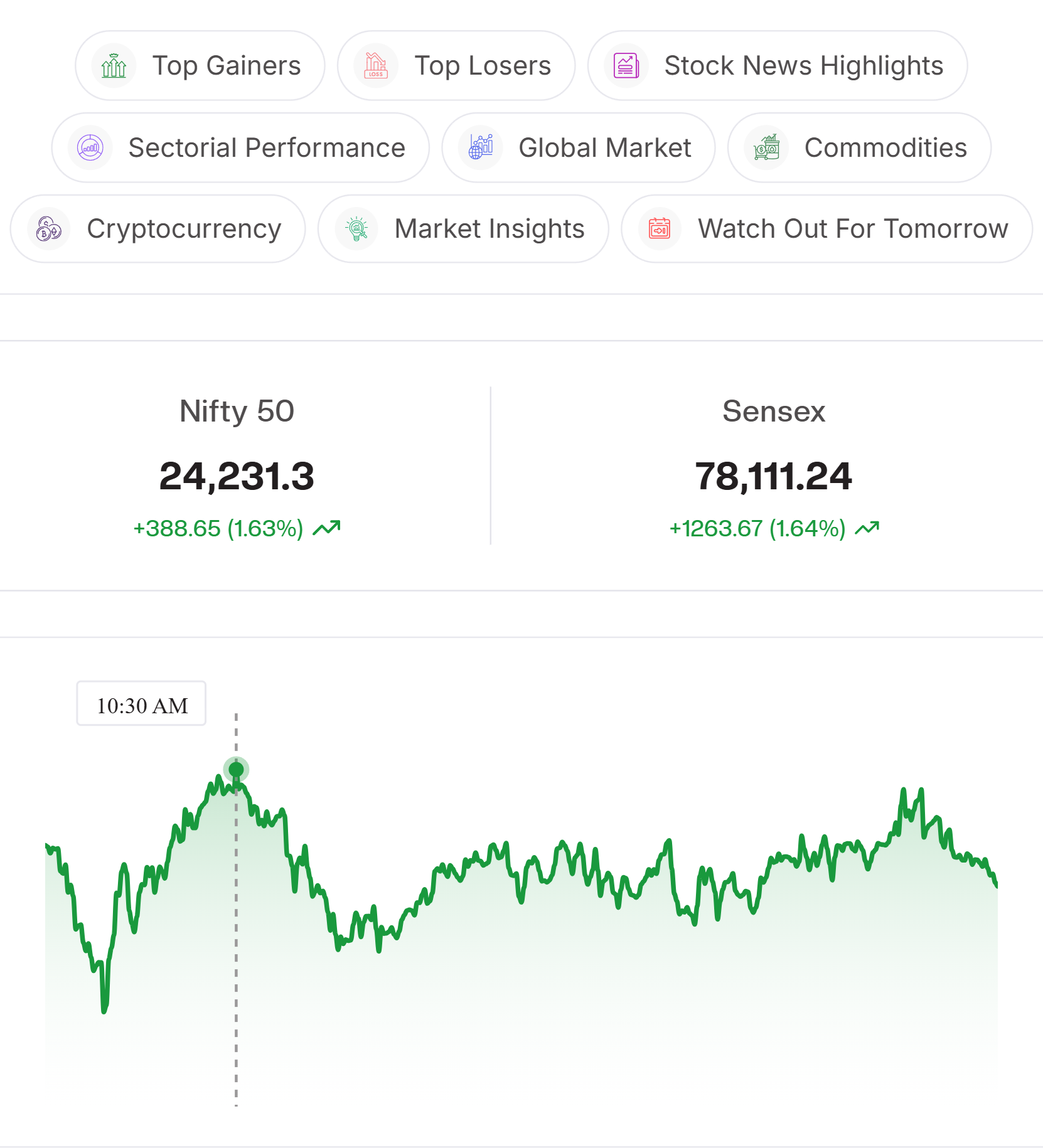 Index Watch: Nifty opened on a positive note and witnessed a strong rally as market sentiment improved after recent correction. Lower FII selling and easing geopolitical tensions between the U.S. and Iran supported optimism. Support is seen at 23,850 while resistance is placed near 24,500. Falling crude prices may further support equities.