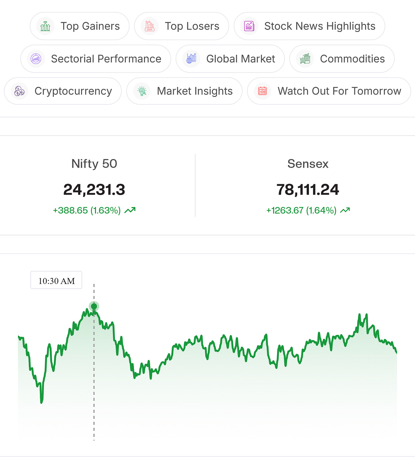 Advance-Decline Ratio: Market breadth remained strong with Advance at 2836 and Decline at 438 indicating broad based buying interest across stocks in the market.