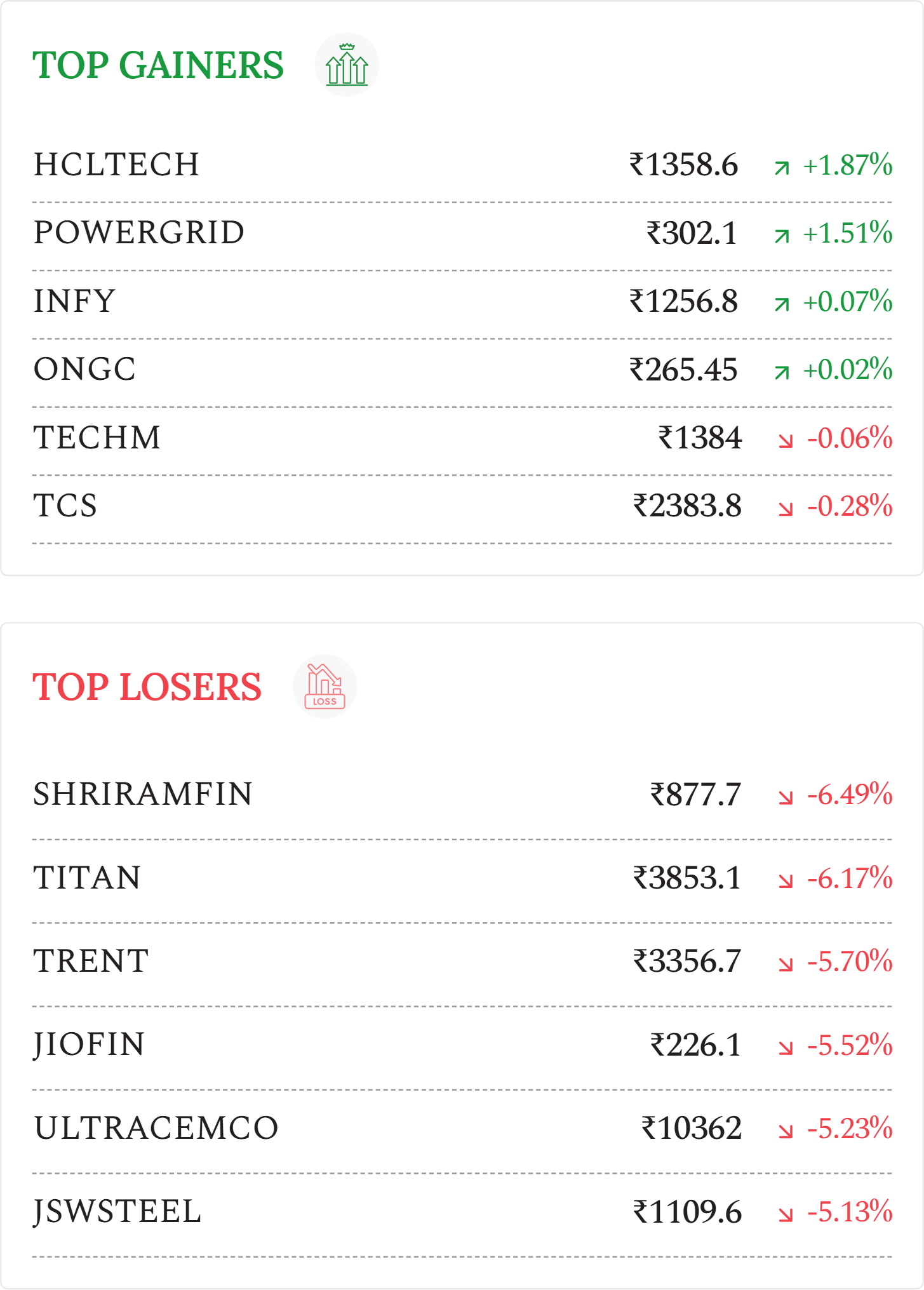Vedanta (-3.93%): Stock declined despite announcing a third interim dividend of ₹11/share (₹4,300 crore payout) and providing clarification on the Jaiprakash Associates acquisition.