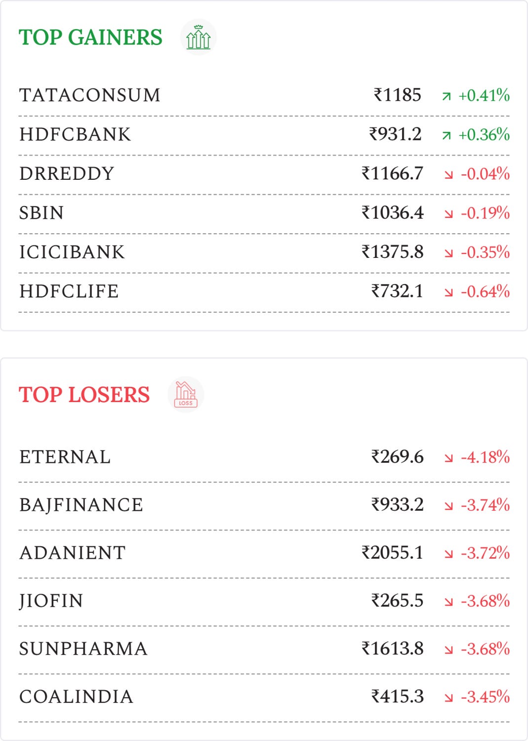 Hindustan Zinc (+3.08%): Shares advanced as silver production rose 10% QoQ, with FY output projected near 680 tonnes amid a sustained global supply deficit.