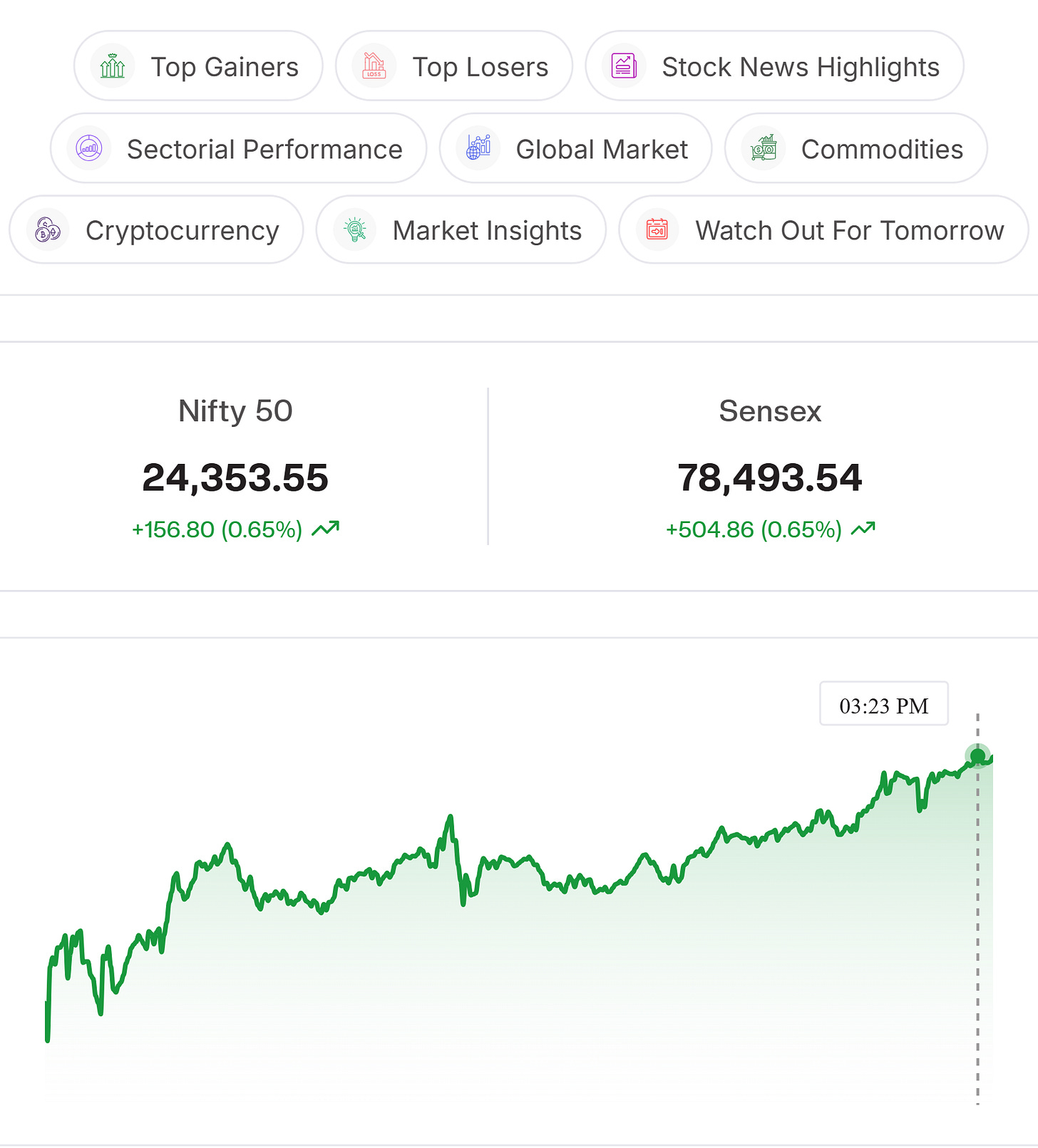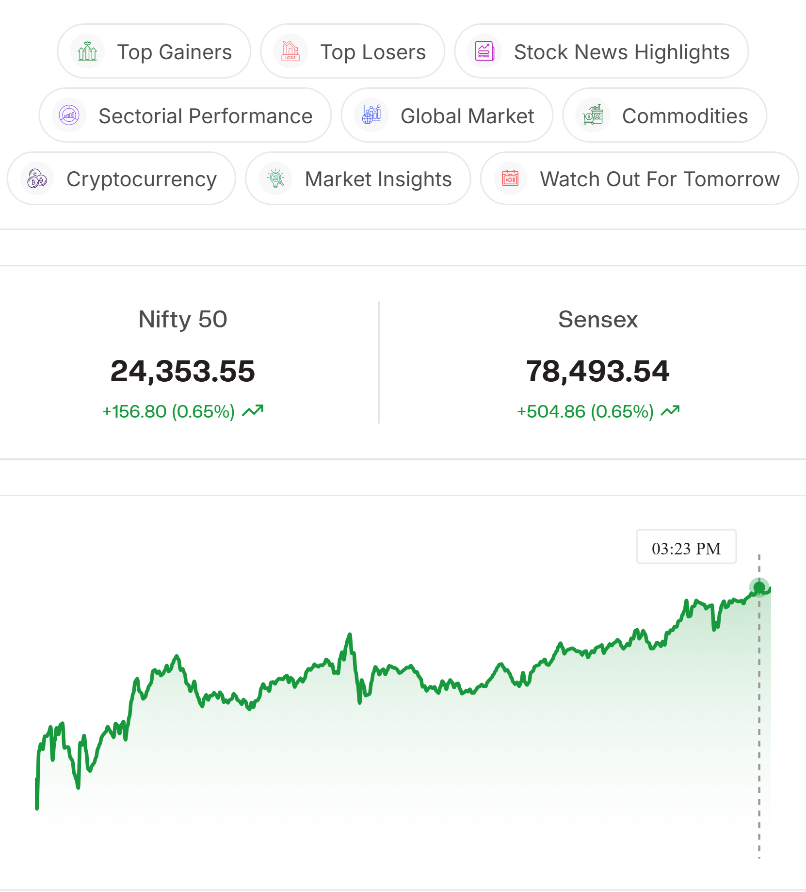 Advance-Decline Ratio: Market breadth remained strong, with 2,363 advances against 891 declines, indicating broad-based buying interest and positive market sentiment.