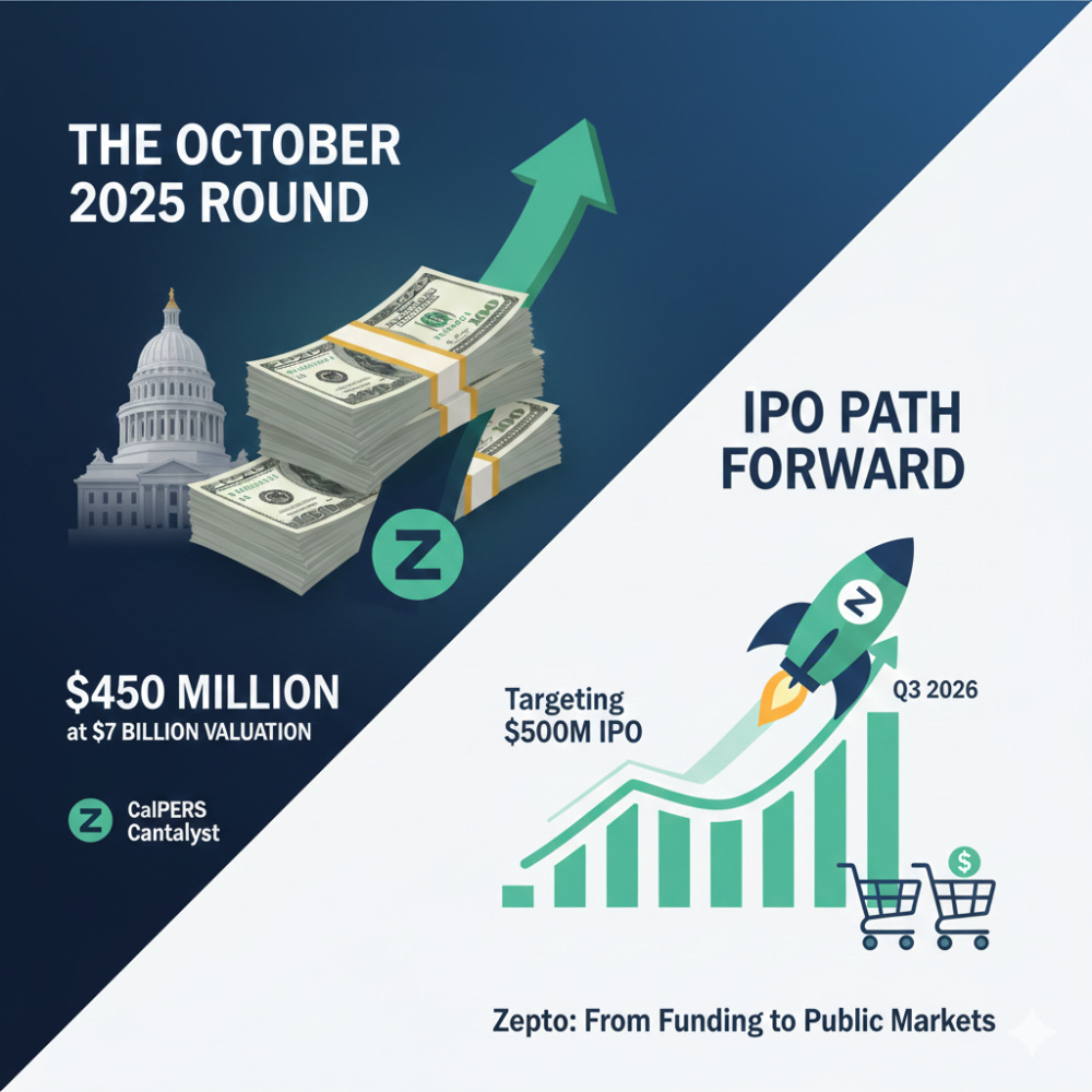 Zepto’s path toward an IPO is emerging as a defining chapter in India’s quick-commerce story. After raising fresh capital in October 2025, the company accelerated preparations for a public listing. By December 2025, Zepto filed draft IPO papers through the confidential route, signalling serious intent to tap public markets by Q3 2026. The company is reportedly targeting an IPO size of around $500 million, building on its most recent funding round that valued Zepto at approximately $7 billion.
