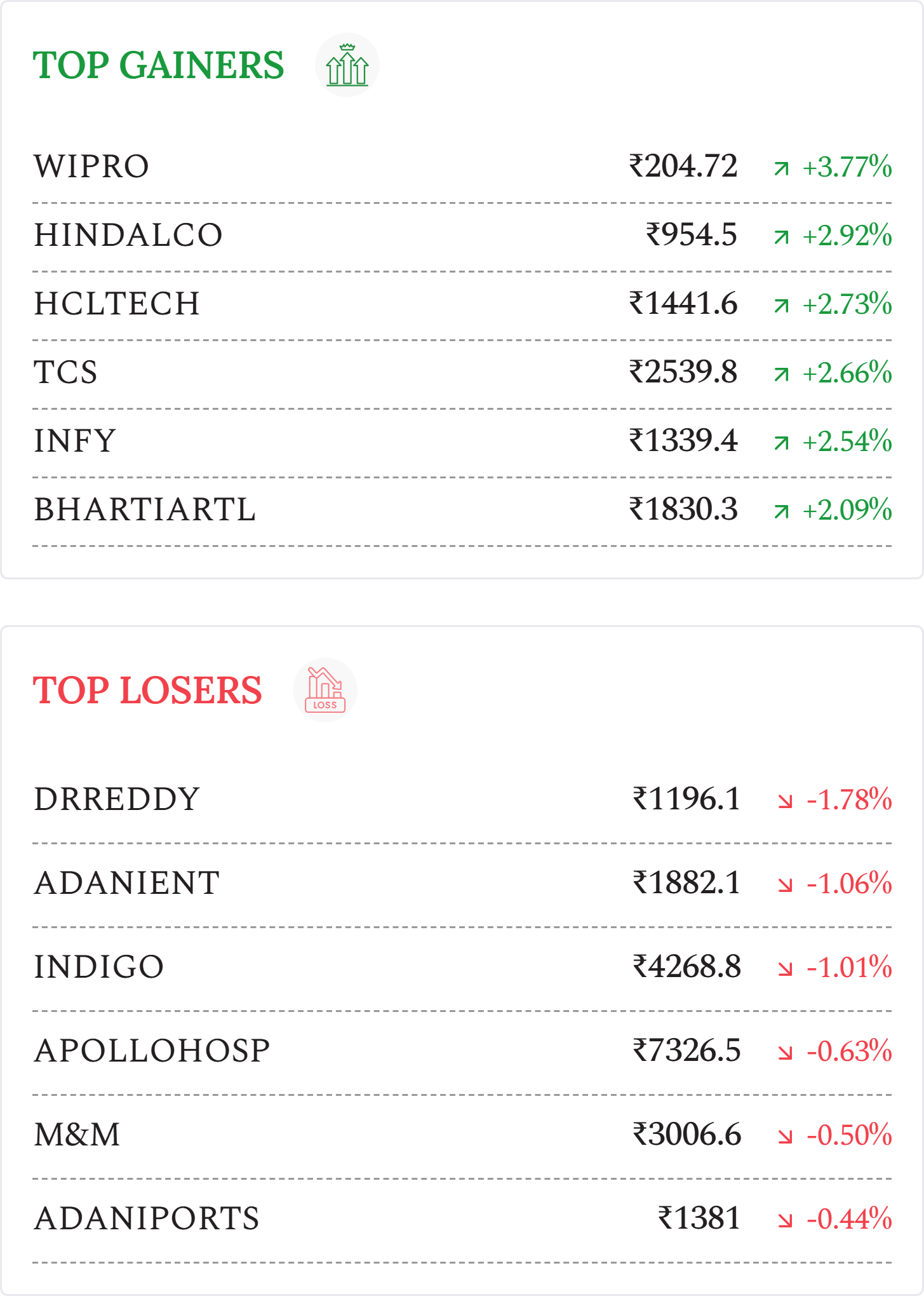 IT | Nifty IT (+2.50%): Index advanced for the third consecutive session, with all constituents trading in green, driven by broad-based buying, improved sentiment, and strength across IT majors.