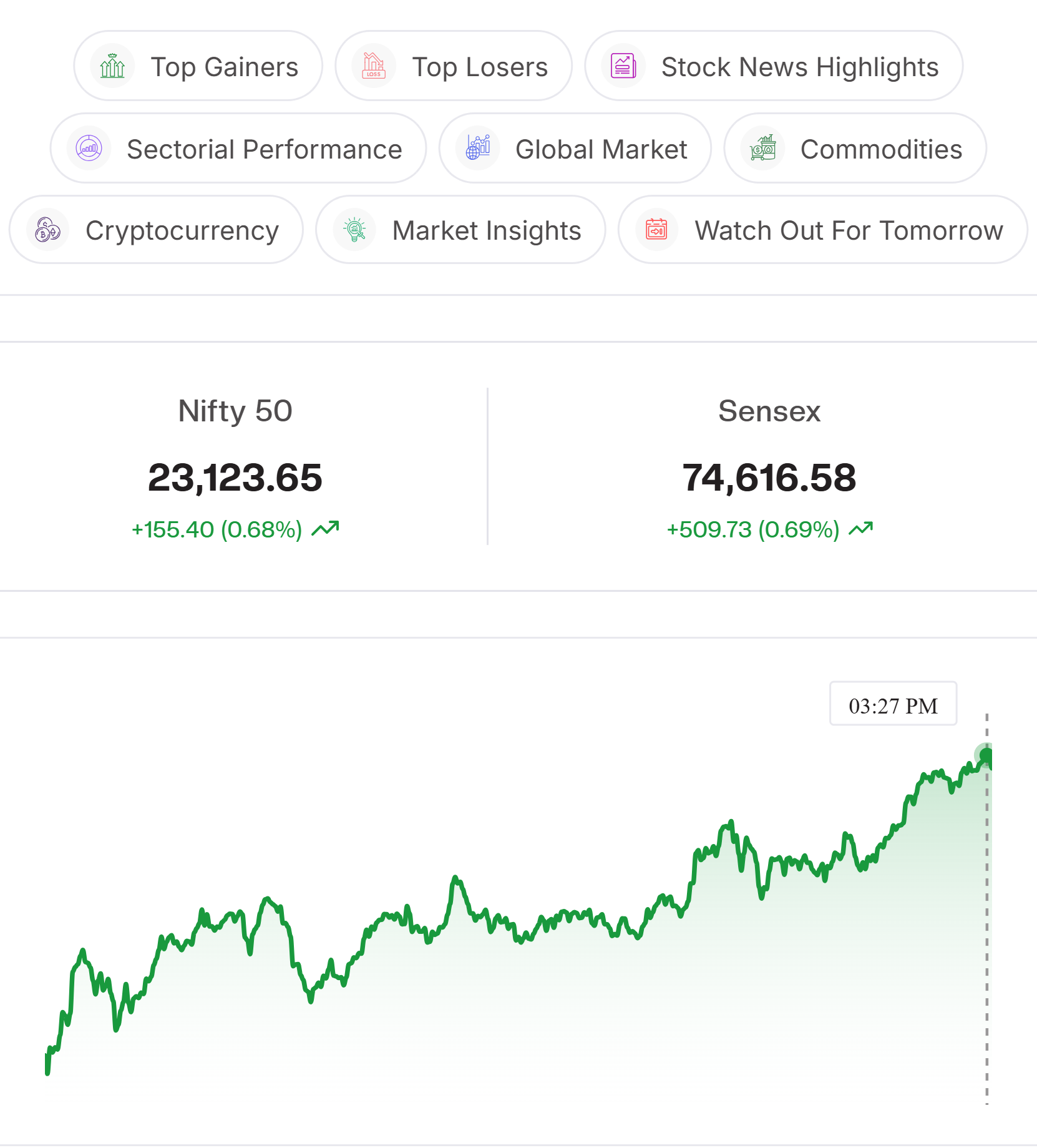 Index Watch: Nifty extended its rally for the third consecutive session, supported by easing geopolitical tensions and a pause in war concerns, driving a recovery in market sentiment. The index sustained above previous highs, indicating strength, with resistance seen near 23,300 and immediate support around 22,500, while investors remain watchful of global developments.