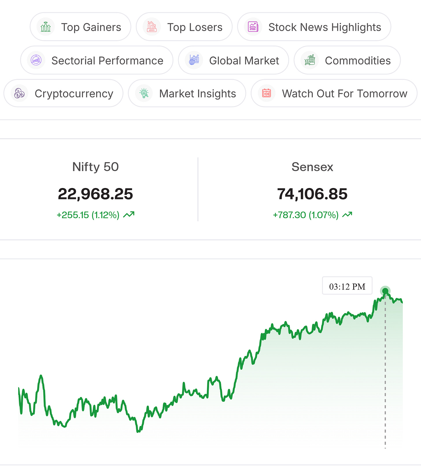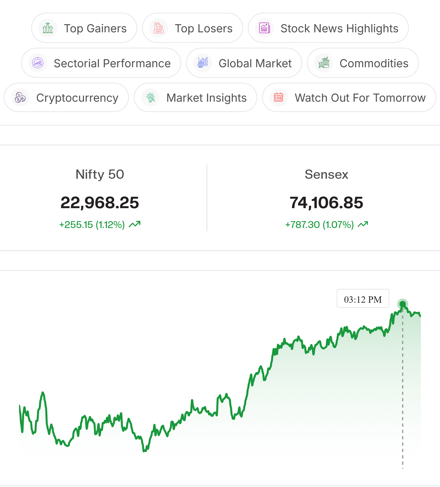 Advance-Decline Ratio: Market breadth remained positive with 2,511 advances against 746 declines, indicating broad-based buying across the market.