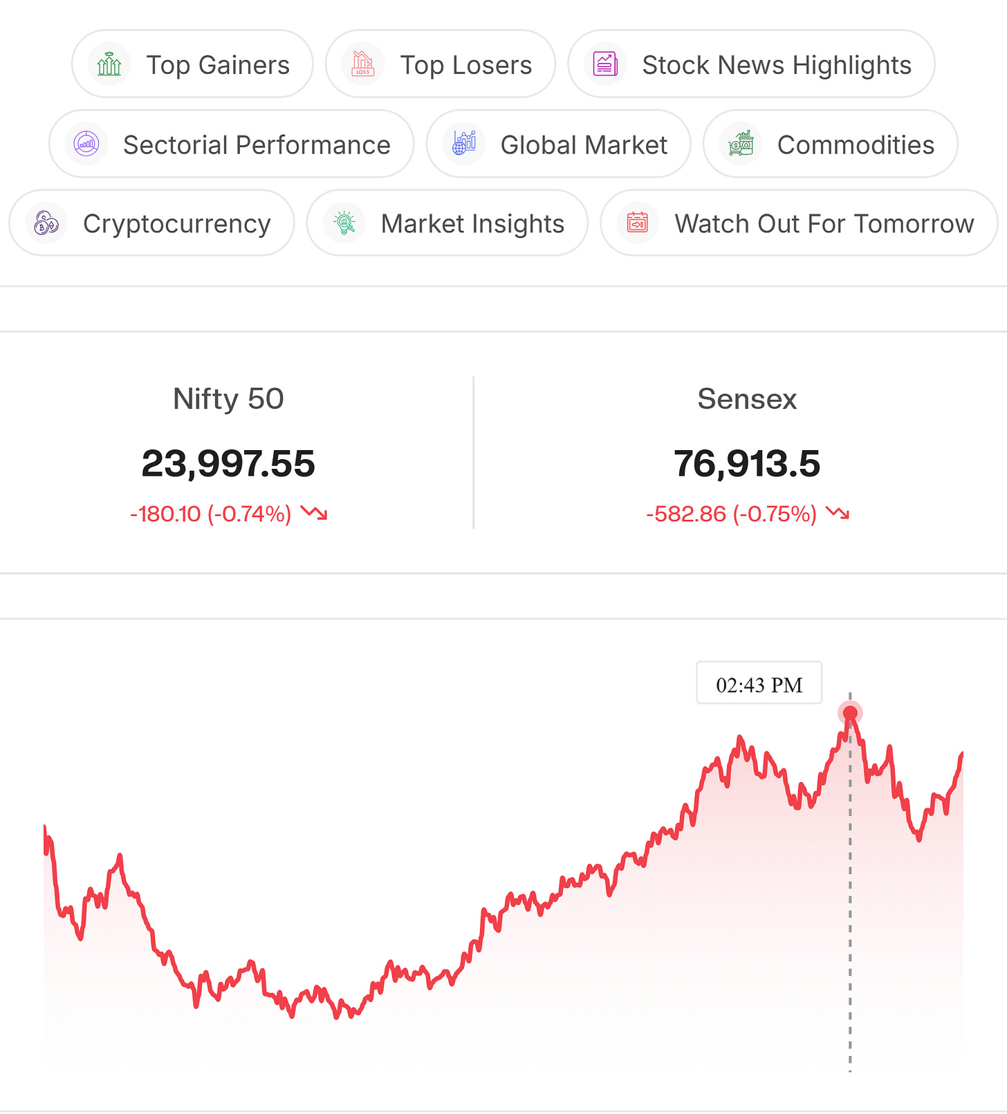Index Watch: Nifty opened with a negative gap and remained under pressure early, but rebounded from lower levels; attempted recovery was capped by profit booking near close, while rising crude prices kept sentiment cautious, with support Seen at 23,800 and resistance around 24,300.